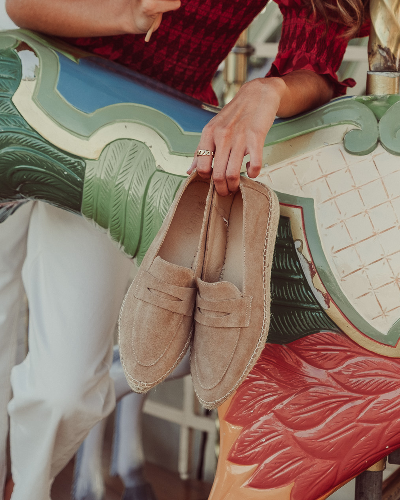 Pietra, tu nuevo par de mocasines favoritos para el día a día. Hechos de suave cuero gamuza, estos zapatos no solo son elegantes, sino increíblemente cómodos. Su suela de yute le da un aire relajado y versátil que combina a la perfección con jeans, vestidos o faldas. Prepárate para llevarlos a todas partes.