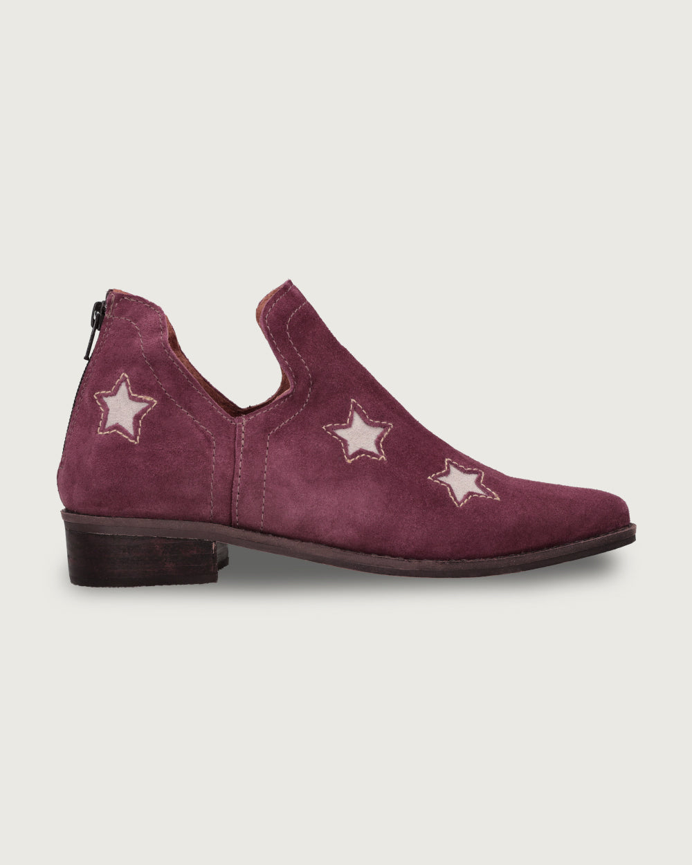 - Botin de cuero gamuza color burdeo.