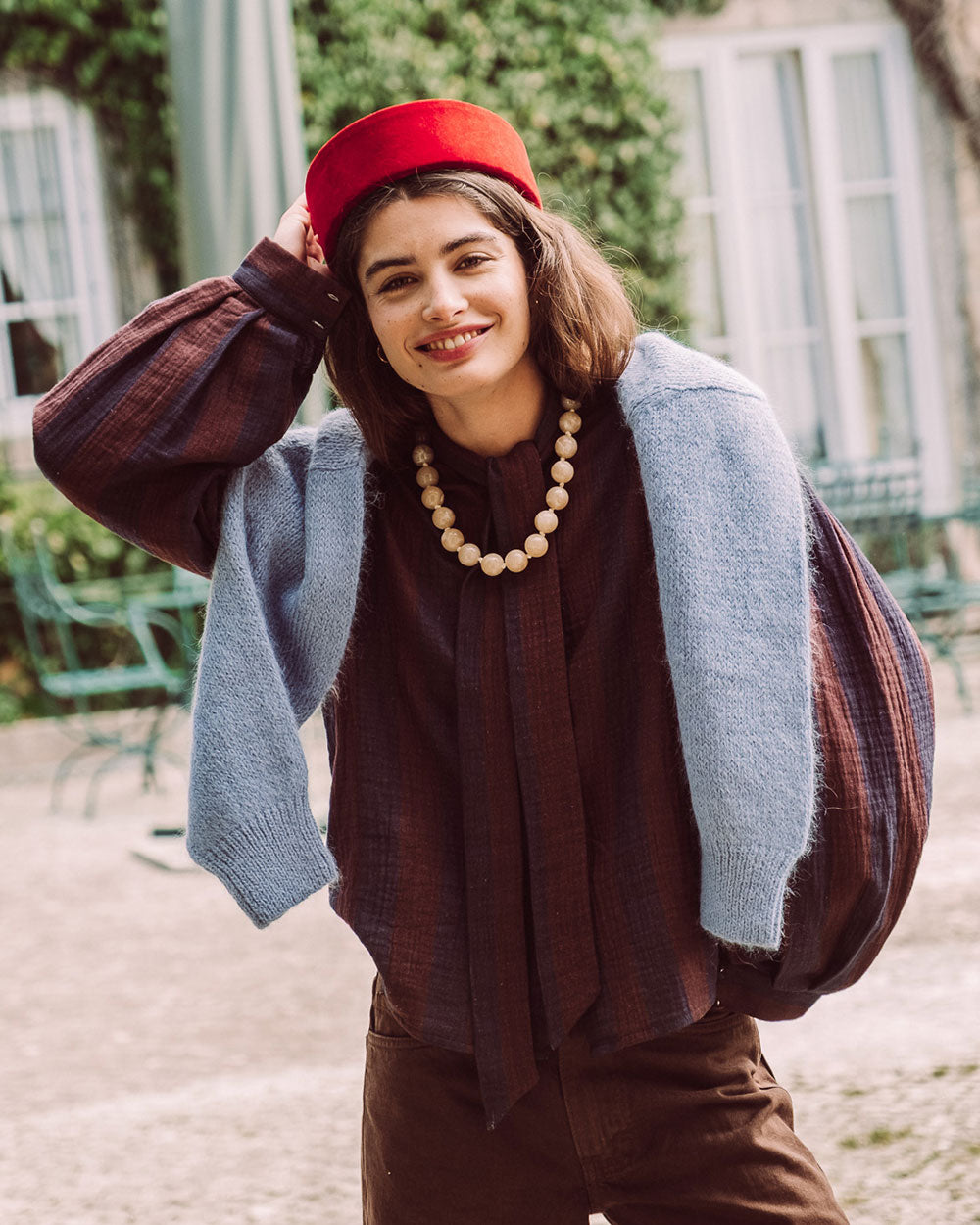 BLUSA ZAYA COFFEE BEIGE STRIPES PREVENTA