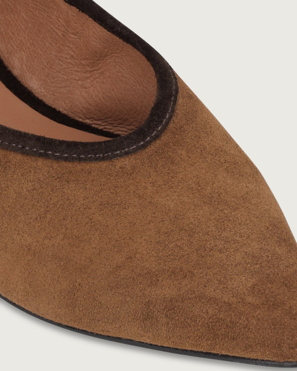Minimalistas, sofisticadas y con un encanto atemporal. Estas bailarinas en gamuza café elevan cualquier look con su diseño refinado y su sutil tira ajustable, que aporta un toque de delicadeza y seguridad. Su punta estilizada alarga la silueta, mientras que su suavidad y comodidad las convierten en un imprescindible para el día a día.