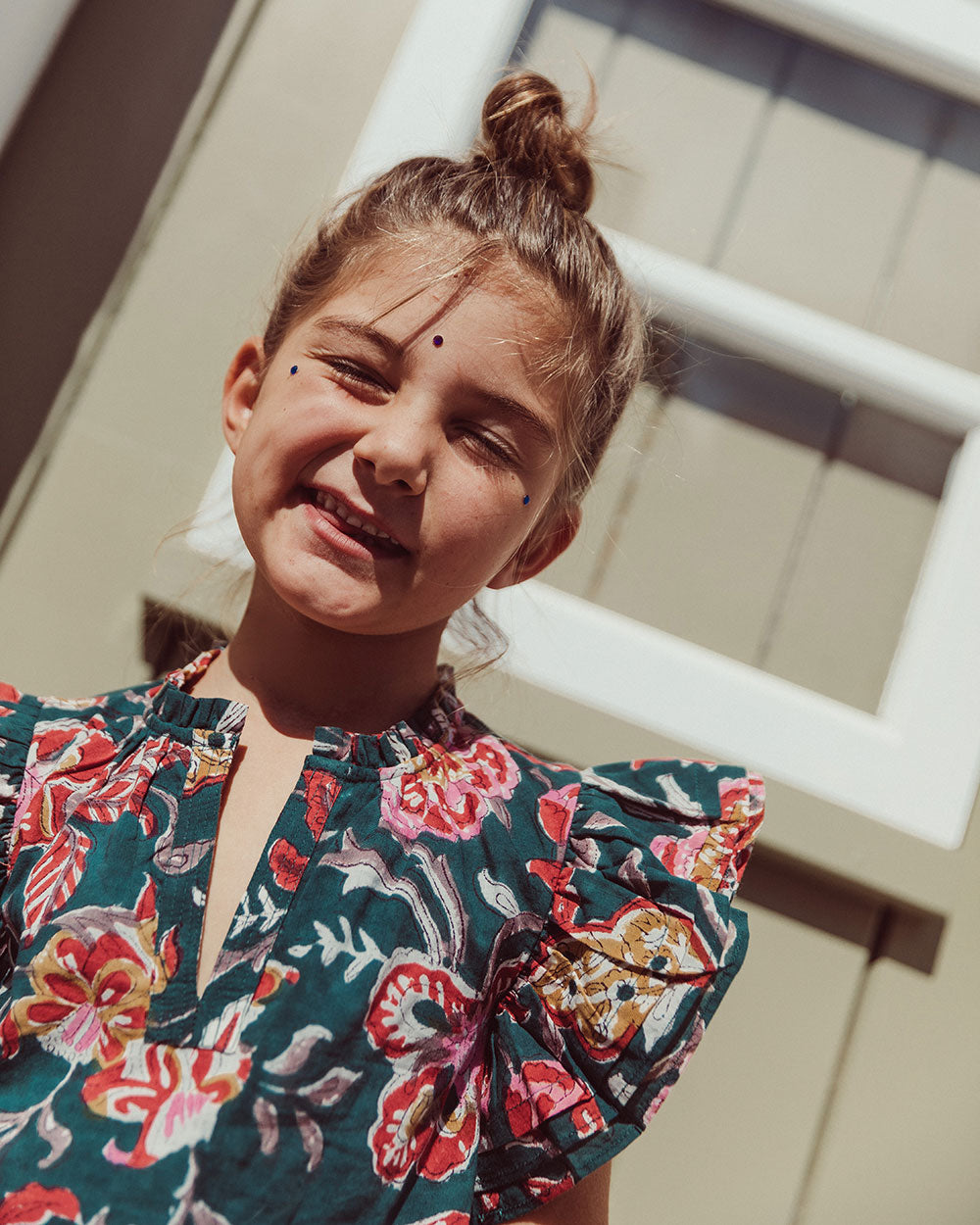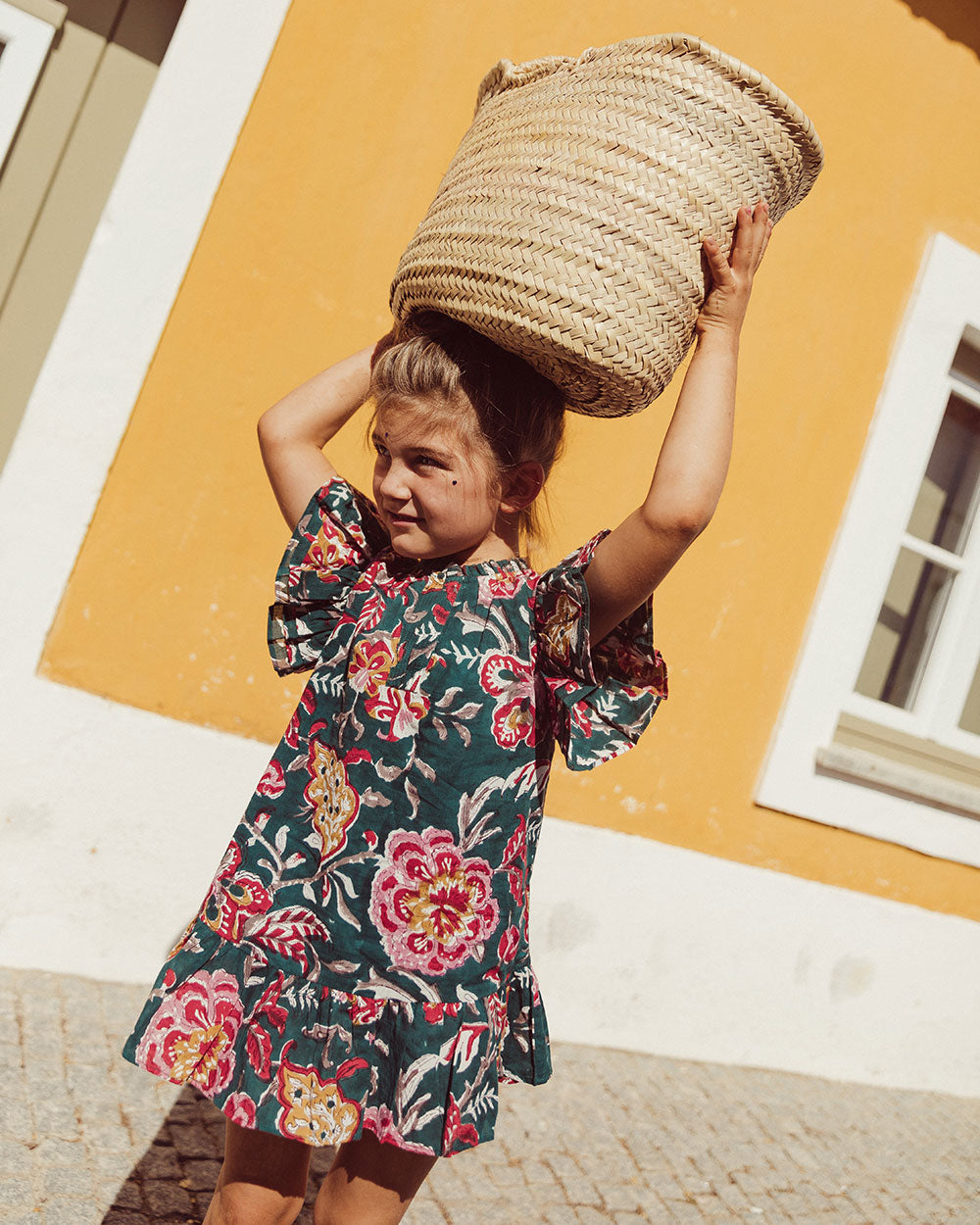 VESTIDO ANGELE PETROL BLUE FLOWERS PETIT