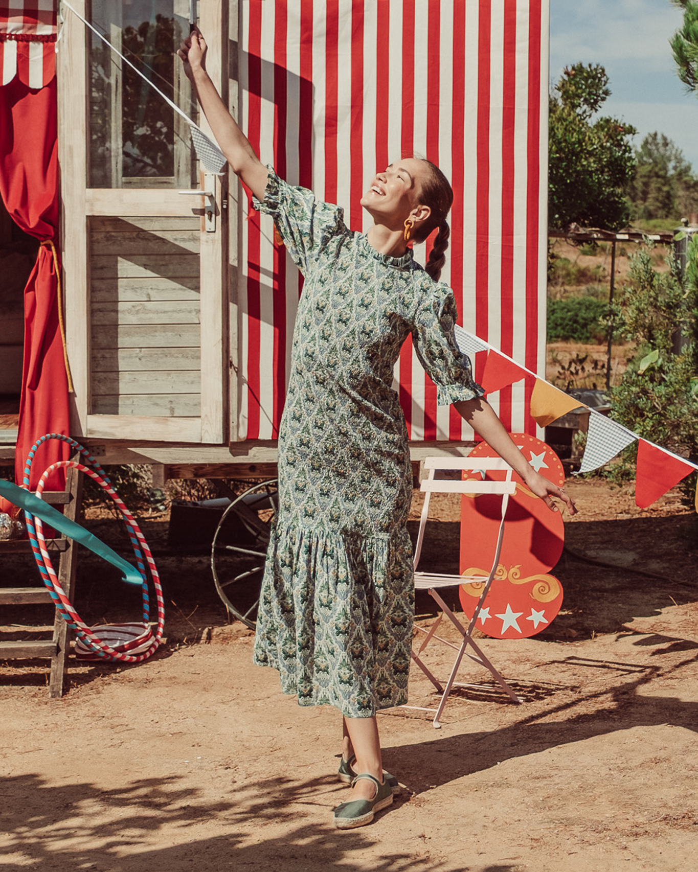 Nuestro vestido Amira se destaca por sus detalles de panal de abeja, sus mangas englobadas y su estilo distinguido. Es perfecto tanto para el día a día como para utilizarlo en una ocasión especial.