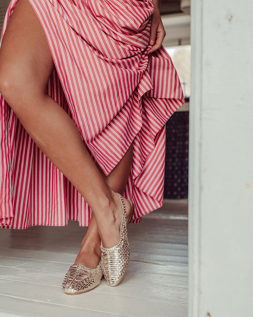 La sandalia de cuero trenzado que destaca por su diseño artesanal y su gran versatilidad. Su construcción de calidad y el intrincado patrón trenzado la convierten en el calzado perfecto para dar un toque de textura y sofisticación a cualquier conjunto, manteniendo la comodidad en cada paso.