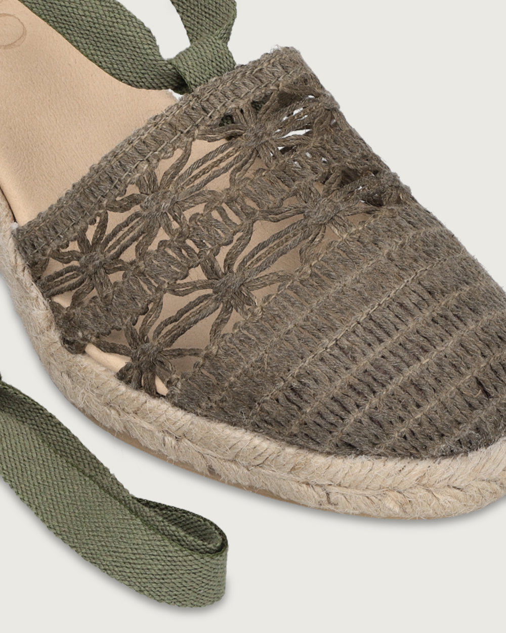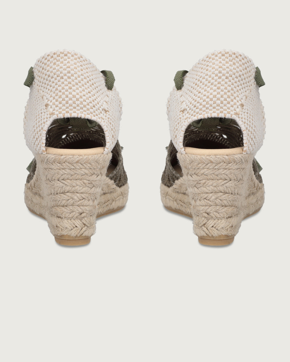 Esta cuña tiene un diseño increíble con tejido manual en la parte frontal. Su cuña de yute de 9,5 cm te da una altura perfecta para que te veas increíble sin perder el confort. Además, cuenta con cintas de amarra para un ajuste perfecto a tu tobillo. La plantilla y el forro de cuero de alta calidad te aseguran un fit súper cómodo para que camines con estilo todo el día.