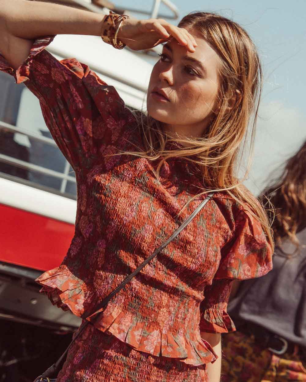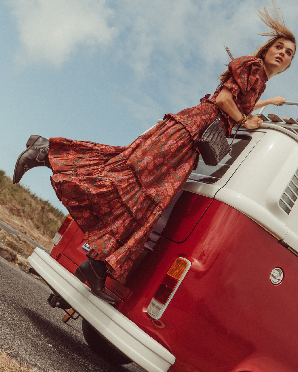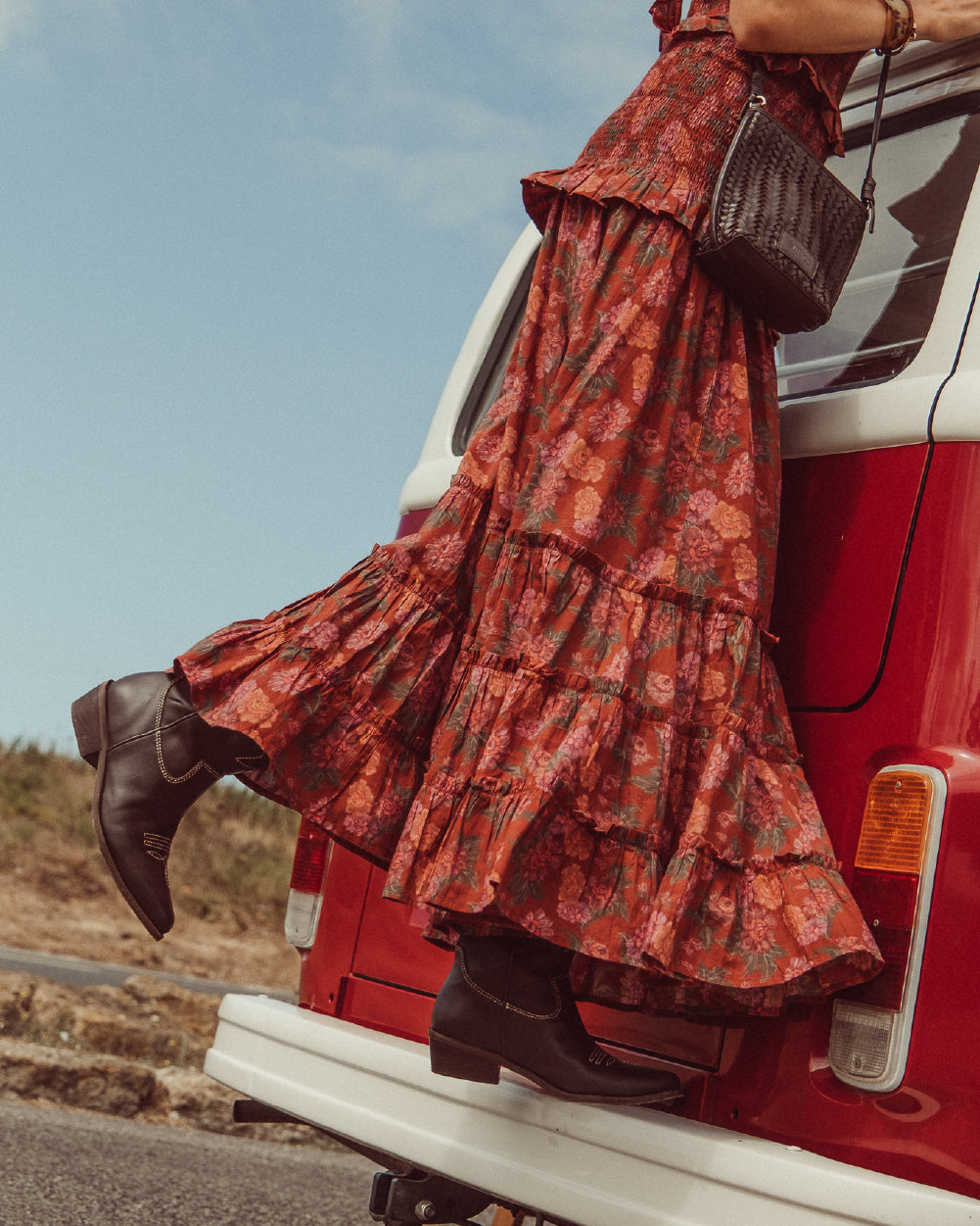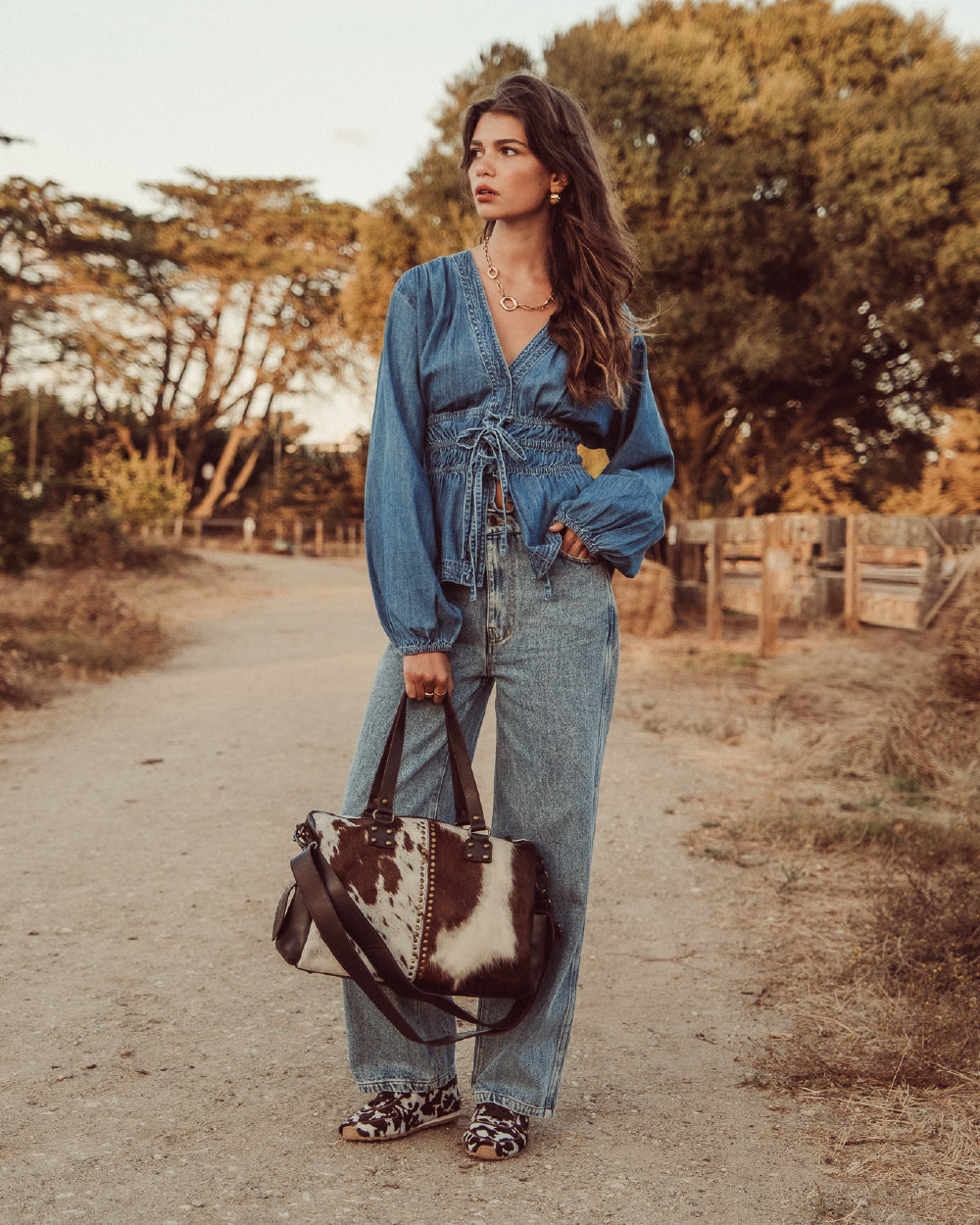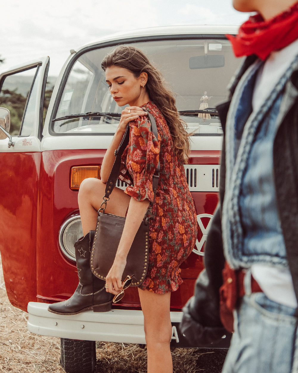 El denim, los flecos y las flores son los protagonistas de este viaje, prendas que te transportan a la esencia de una época que vibra con libertad y estilo.