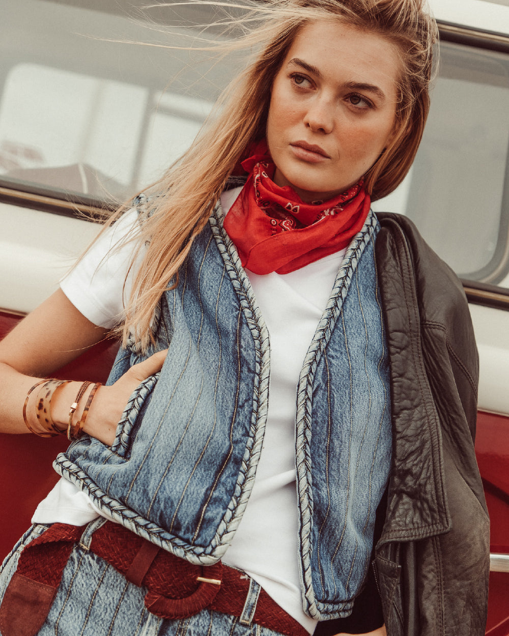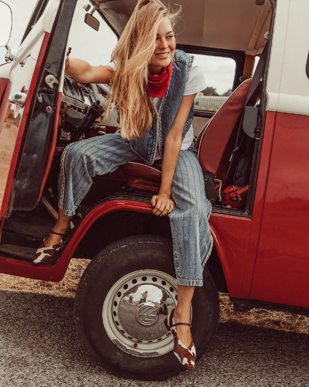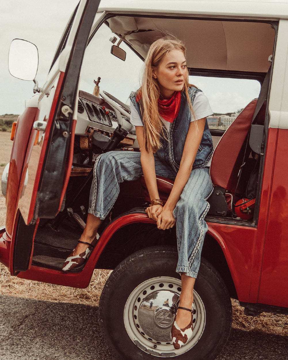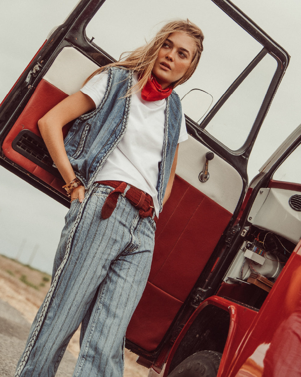 El denim, los flecos y las flores son los protagonistas de este viaje, prendas que te transportan a la esencia de una época que vibra con libertad y estilo.