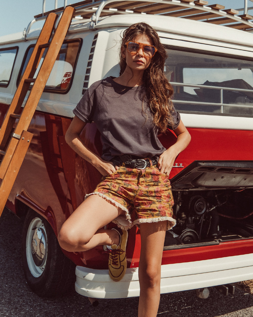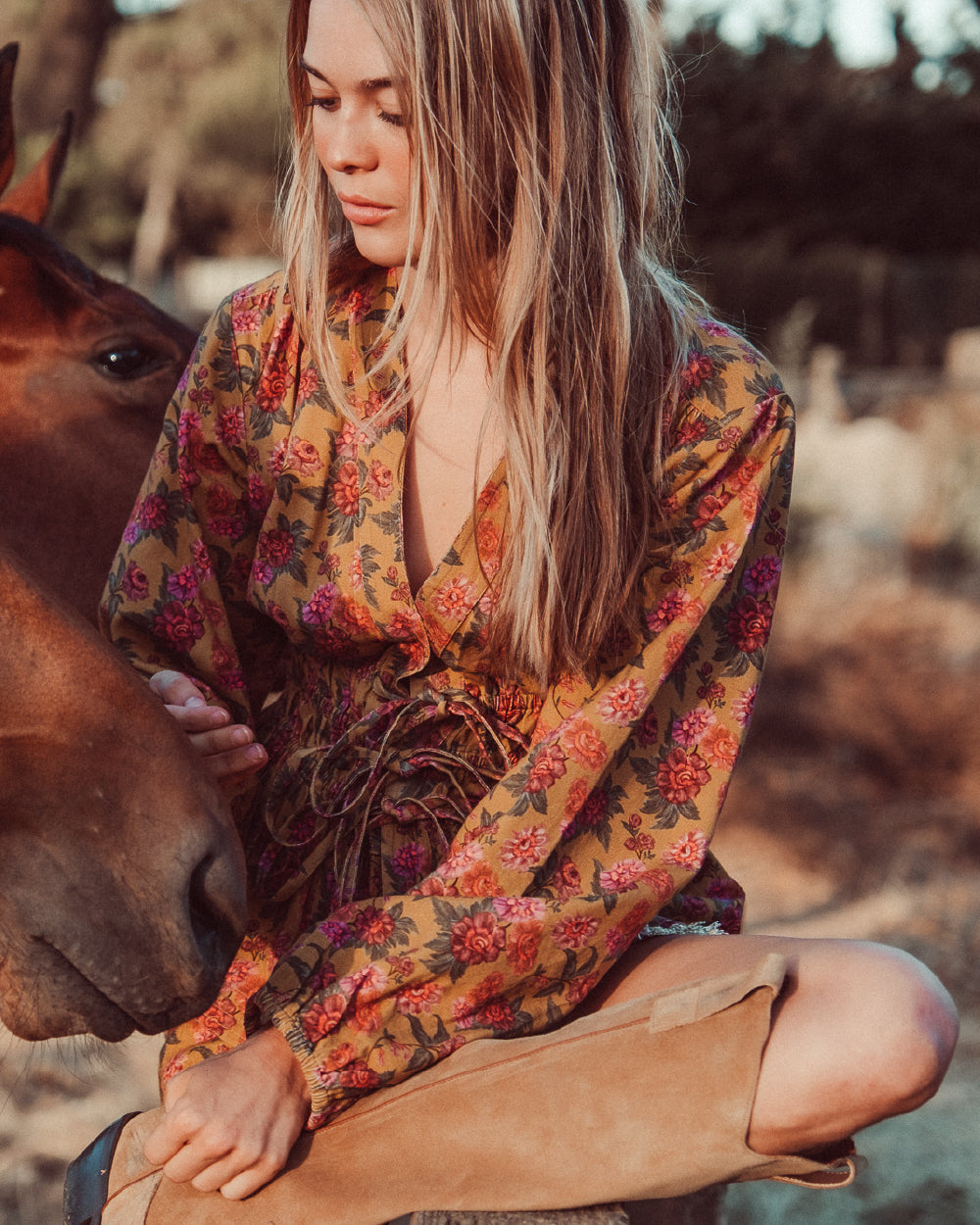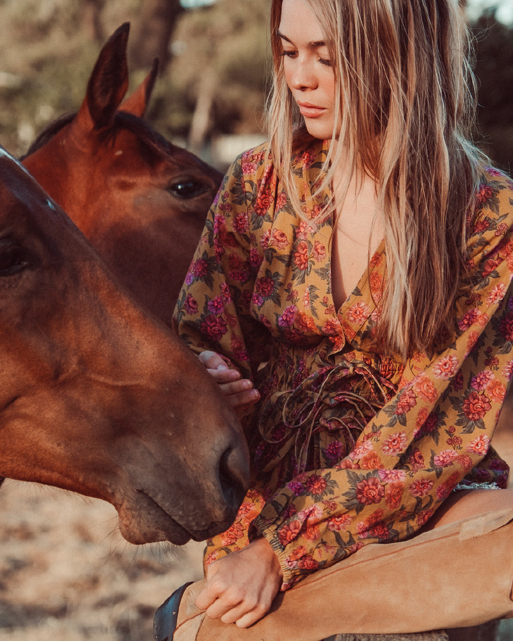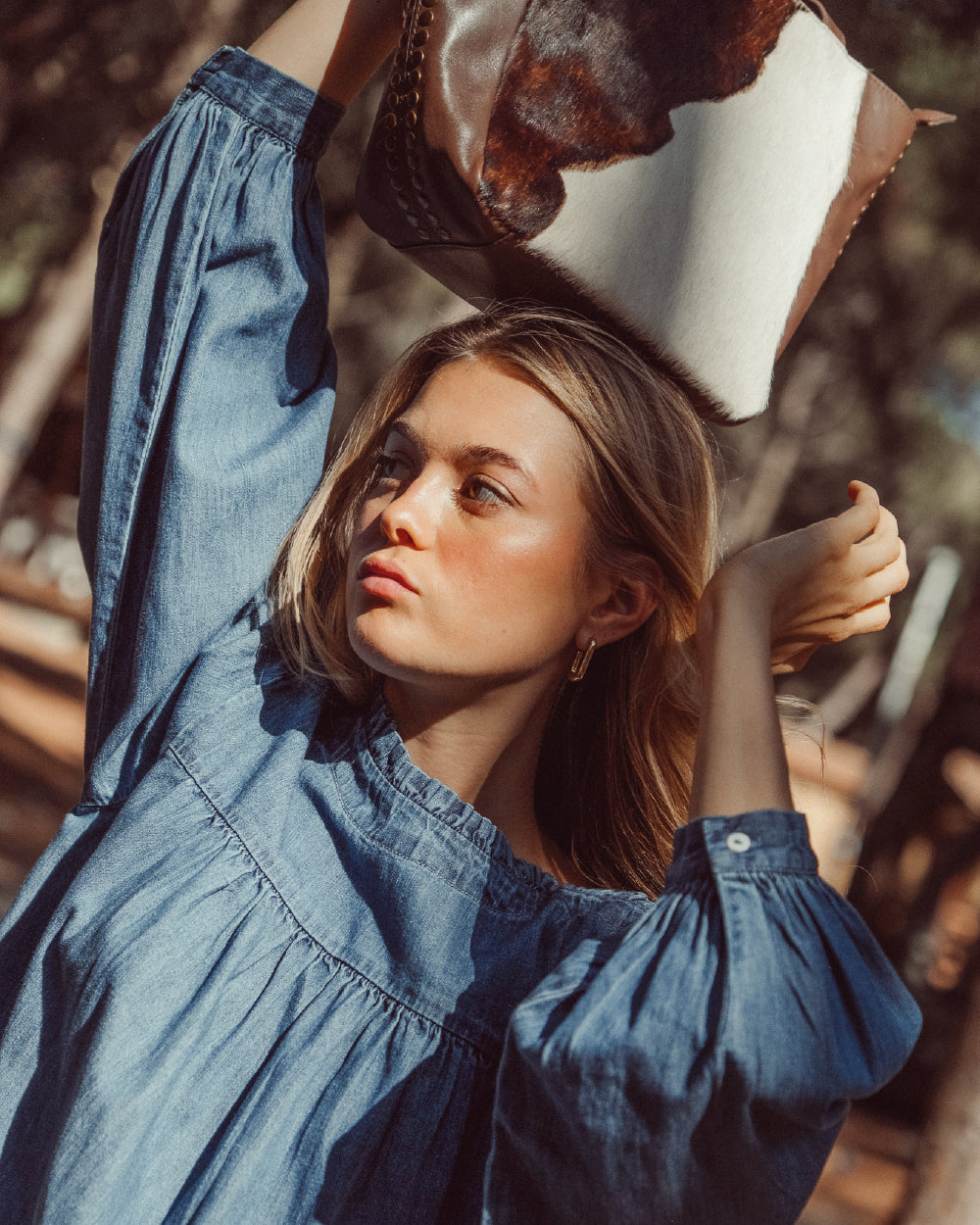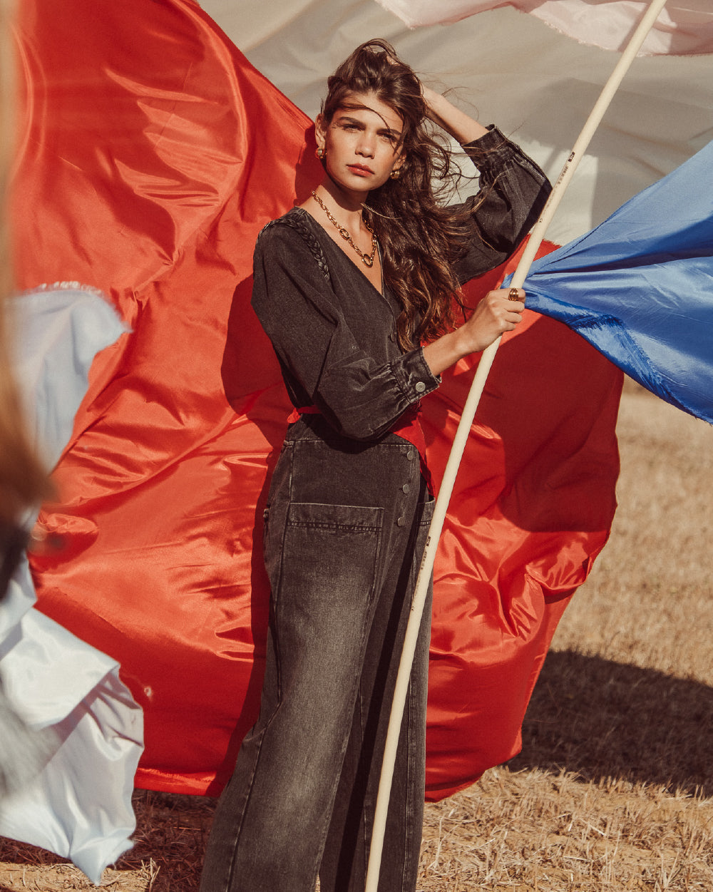El denim, los flecos y las flores son los protagonistas de este viaje, prendas que te transportan a la esencia de una época que vibra con libertad y estilo.