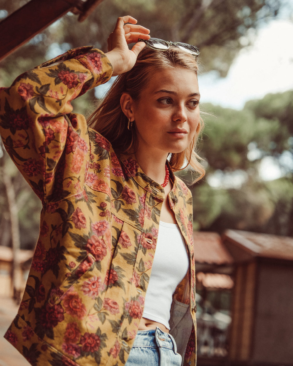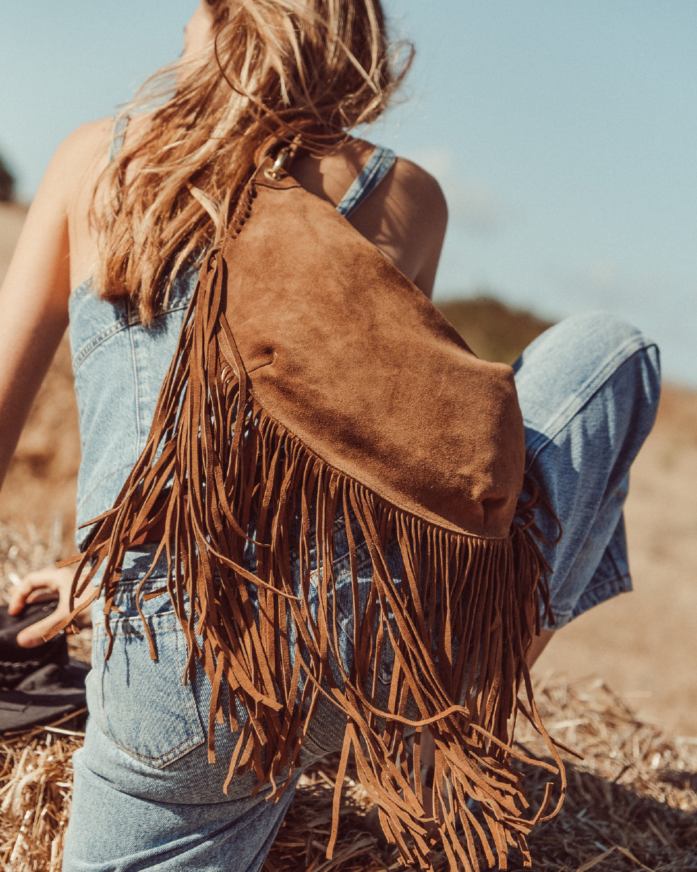 El denim, los flecos y las flores son los protagonistas de este viaje, prendas que te transportan a la esencia de una época que vibra con libertad y estilo.