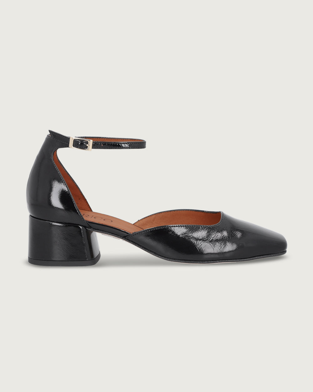 De diseño atemporal que combina elegancia y versatilidad. Confeccionado en cuero charol, este zapato en tono rojo destaca por su originalidad y textura, aportando calidez a cualquier look. Su tacón bajo y cuadrado brinda estabilidad sin renunciar al estilo, mientras que la delicada correa ajustable en el tobillo añade un toque sutil y femenino.