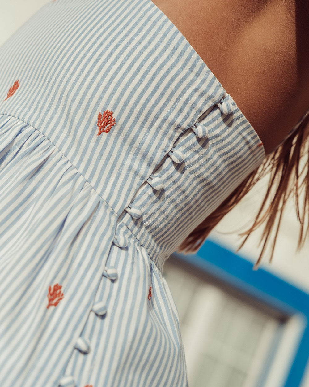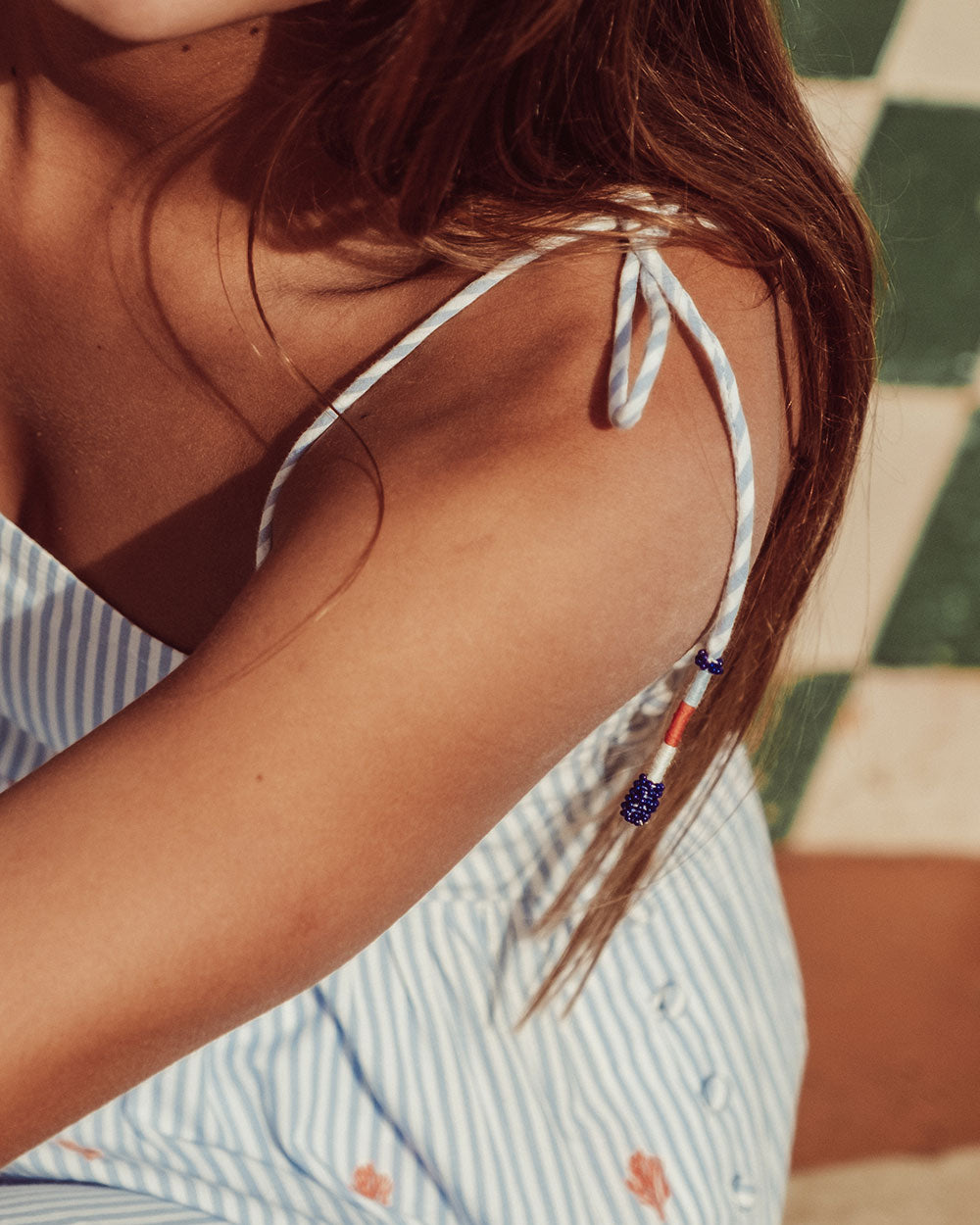 Este top es moderno y especial con delicados detalles bordados, que le da un toque chic y artesanal. Sus amarras en los hombros te permiten ajustar el fit a tu medida, haciendo de este top una prenda perfecta tanto para el uso diario como para ocasiones especiales.